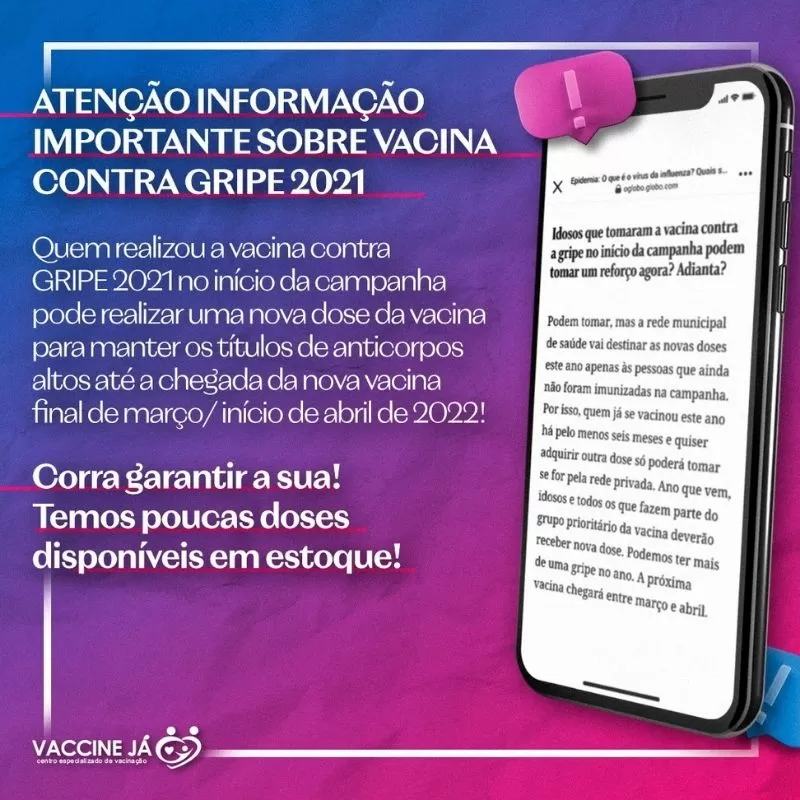 NOSSOS CLIENTES QUE REALIZARAM A VACINA NO INICIO DA CAMPANHA TEM UMA CONDIÇÃO ESPECIAL