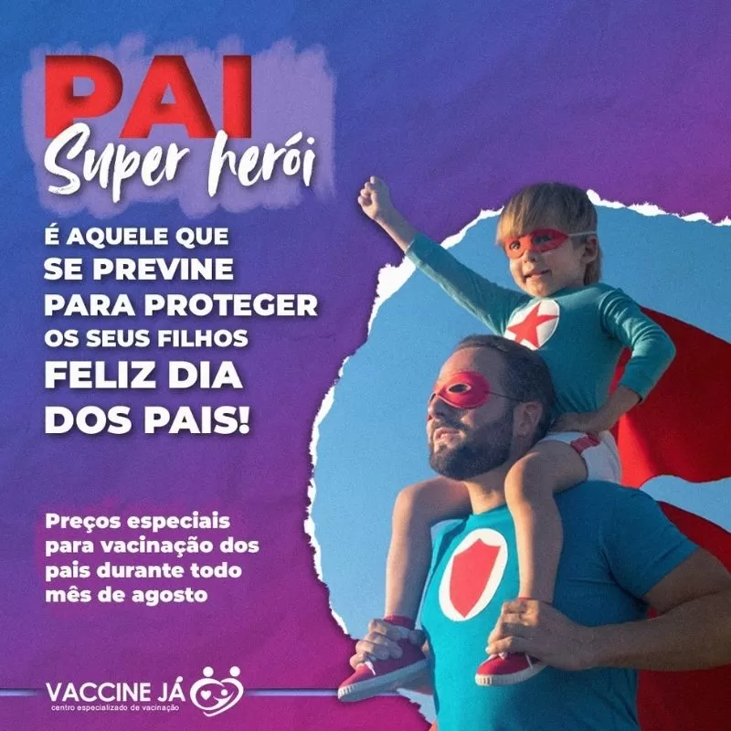 💙 A equipe da "Vaccine Já" deseja um Feliz dia dos pais a todos os pais em especial aos nossos clientes 💙